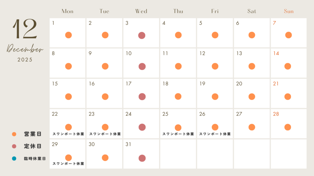 いつもActivity Base Cogue/アクティビティベースコグーをご利用いただき誠にありがとうございます。2025年-2026年年末年始の営業日は下記カ… - 2025年12月営業カレンダー